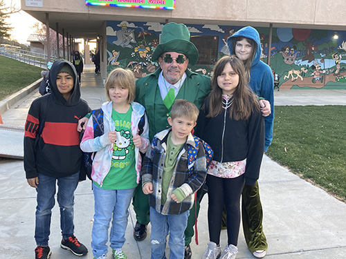 Students arriving to school on St. Patrick’s Day were greeted with an unexpected sight—Principal McNelis at the front gate, fully dressed as a leprechaun and ready to welcome everyone for the day. The surprise sparked laughter, smiles, and plenty of double-takes as students made their way onto campus.